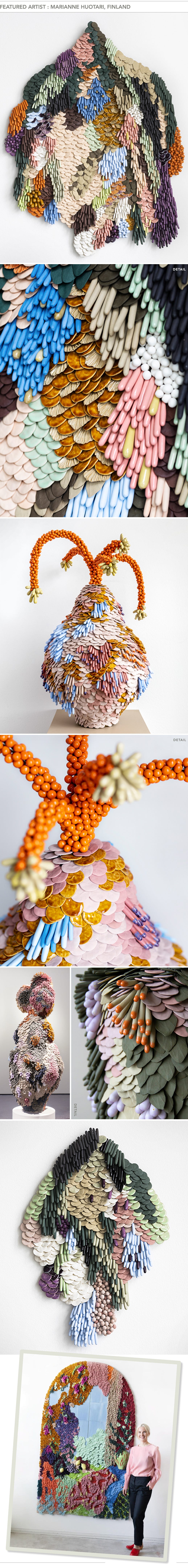 Marianne’s distinctive ceramic works weave tradition with contemporary art by applying the classic Finnish textile technique with unpredictable materials. With her pieces she explores hecticness of modern days through slowness of craftsmanship. Each of her ceramic works is built from small pieces, which pass through Marianne’s hands leaving her personal handprint on them. Repetitive nature of work takes countless meditative hours to complete an art piece.