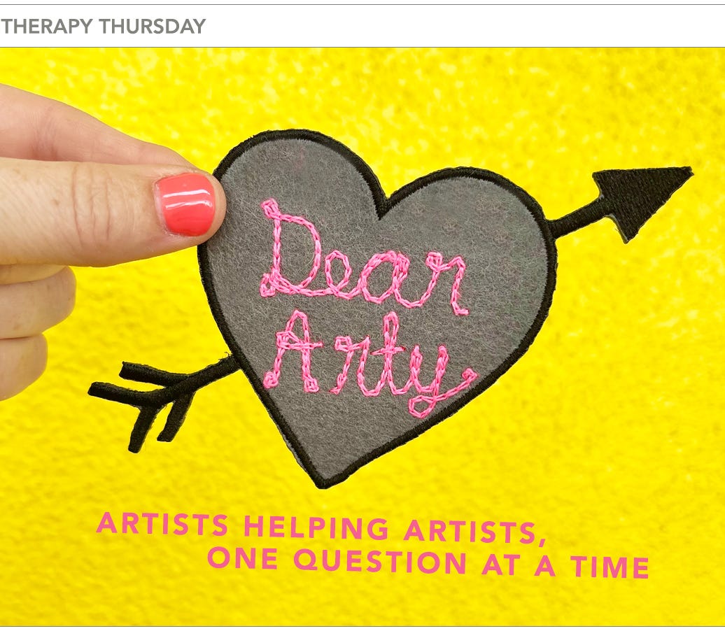One of the insights that came out of my Dear Arty question from a few weeks ago (re: dealing with art world bullshit) is that we don’t always talk to each other about the hard stuff for fear of feeling foolish, or judged, or [insert raw emotion here]. For decades after art school, I felt like my art and I were completely on our own… but that is ABSOLUTELY not the case. We’re all in this together, so when you have a tough day and want to talk to people who ‘get it’… we are your people. If you feel comfortable, please use this weekly column to share the stuff you’re struggling with… and, hey, if you want to remain nameless, you can always sign off with your pseudonym from yesterday ;)