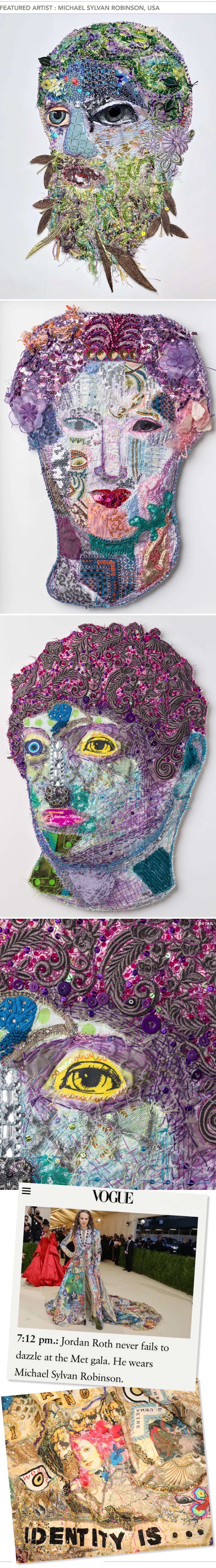 I have just discovered the work of American artist Michael Sylvan Robinson… how? How am I just finding it now!? Sylvan is “an internationally-exhibited genderqueer fiber artist, activist, and leader in arts education, with a background in costume design and as a performance artist.” Oh, and he also designed this insanely beautiful piece that Jordan Roth…