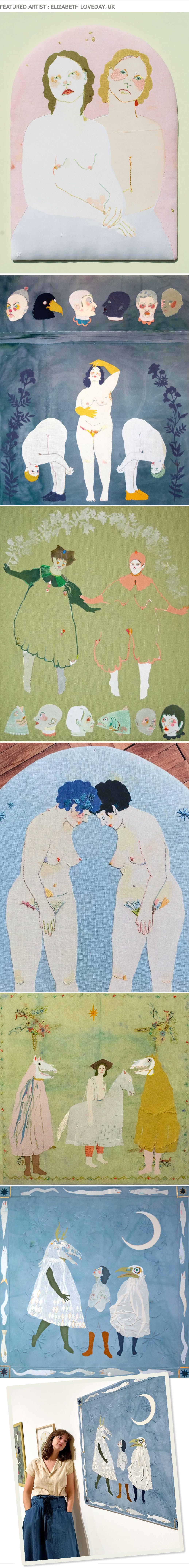 Okay, I’m not in full-on Halloween mode, but we’re creeping closer! Enter these beautiful, folklore-filled, kinda spooky textiles by Cornwall based artist Elizabeth Loveday. Here’s part of her ‘about’ description: